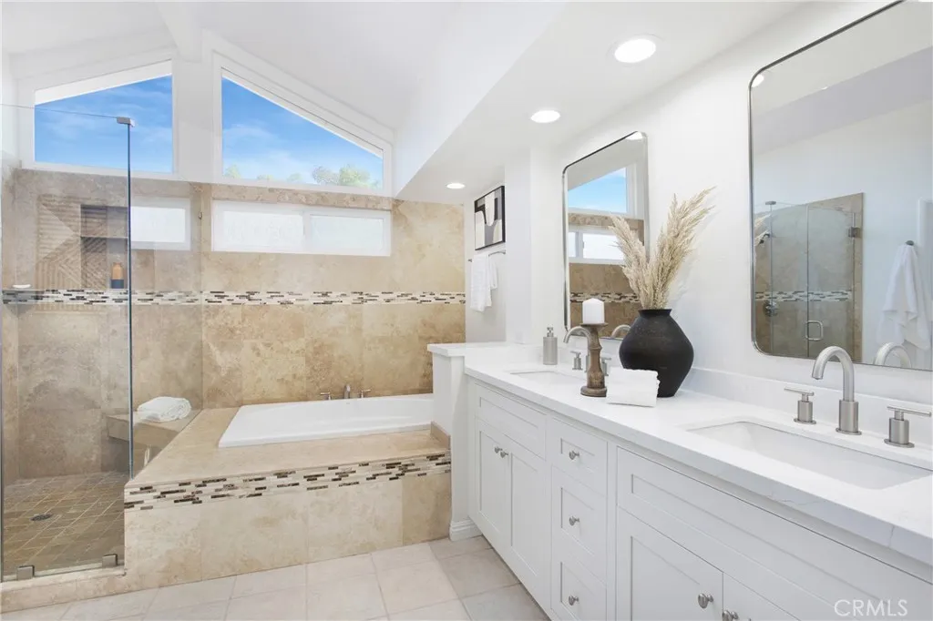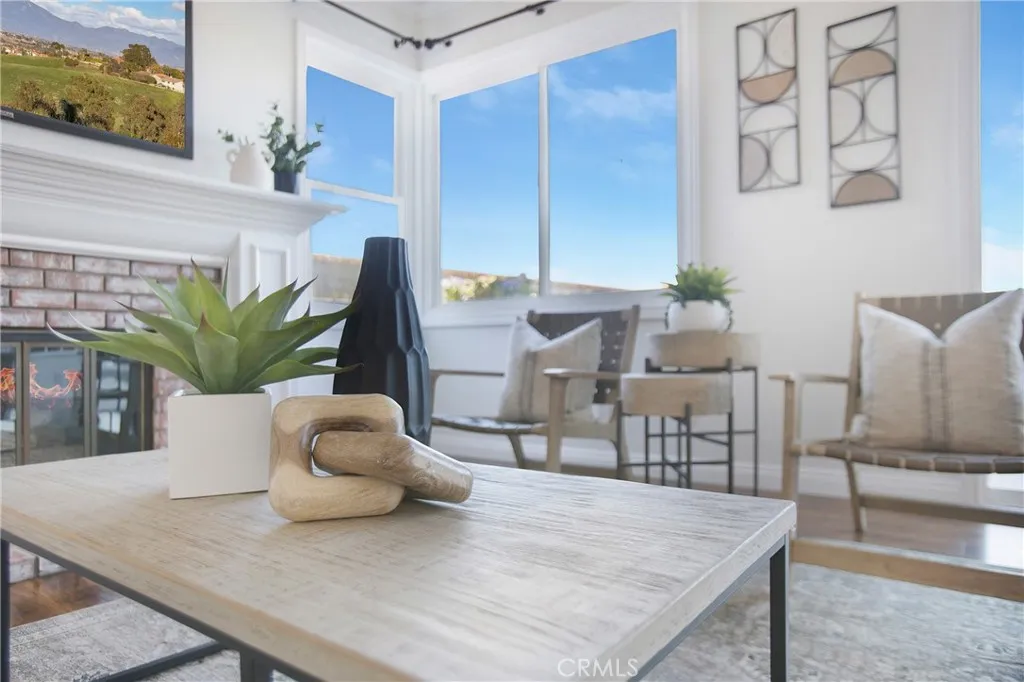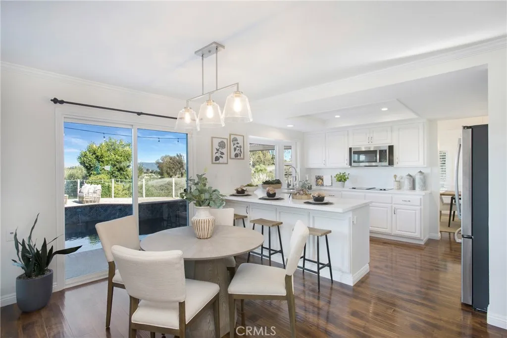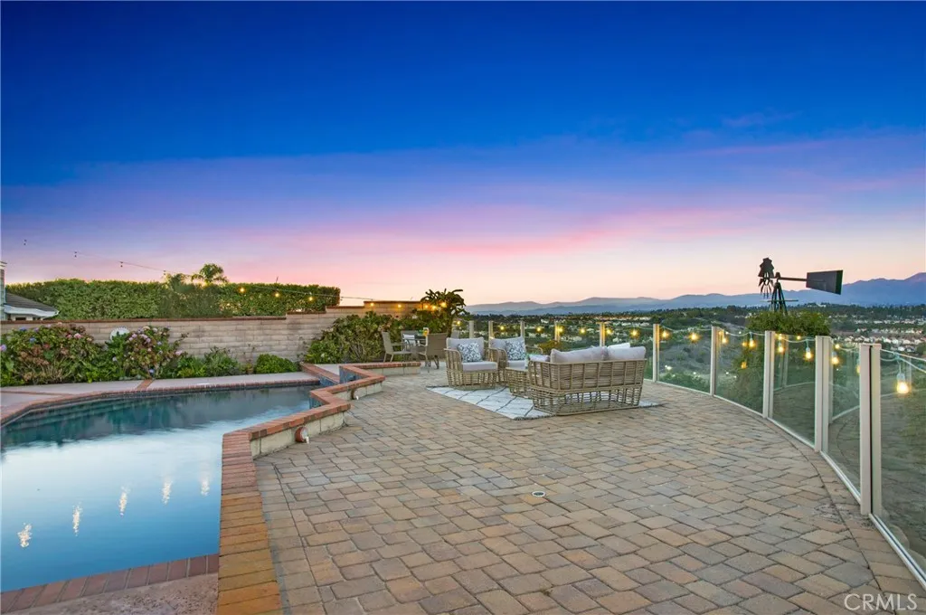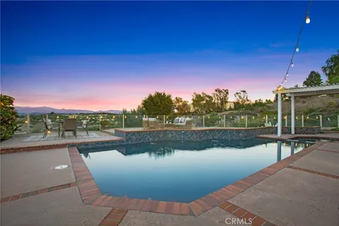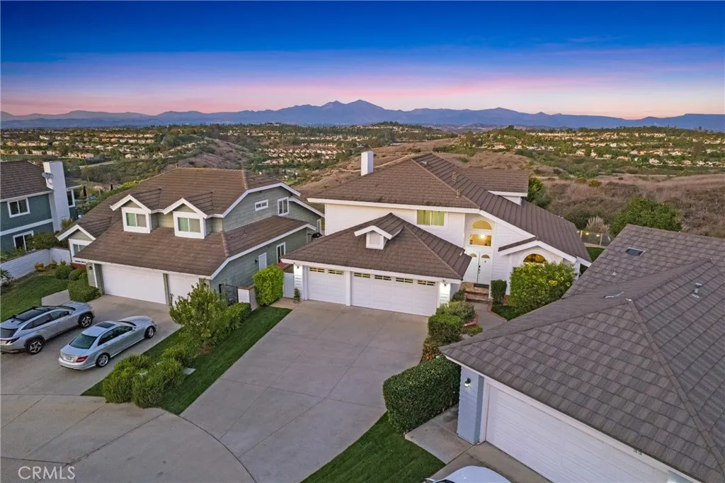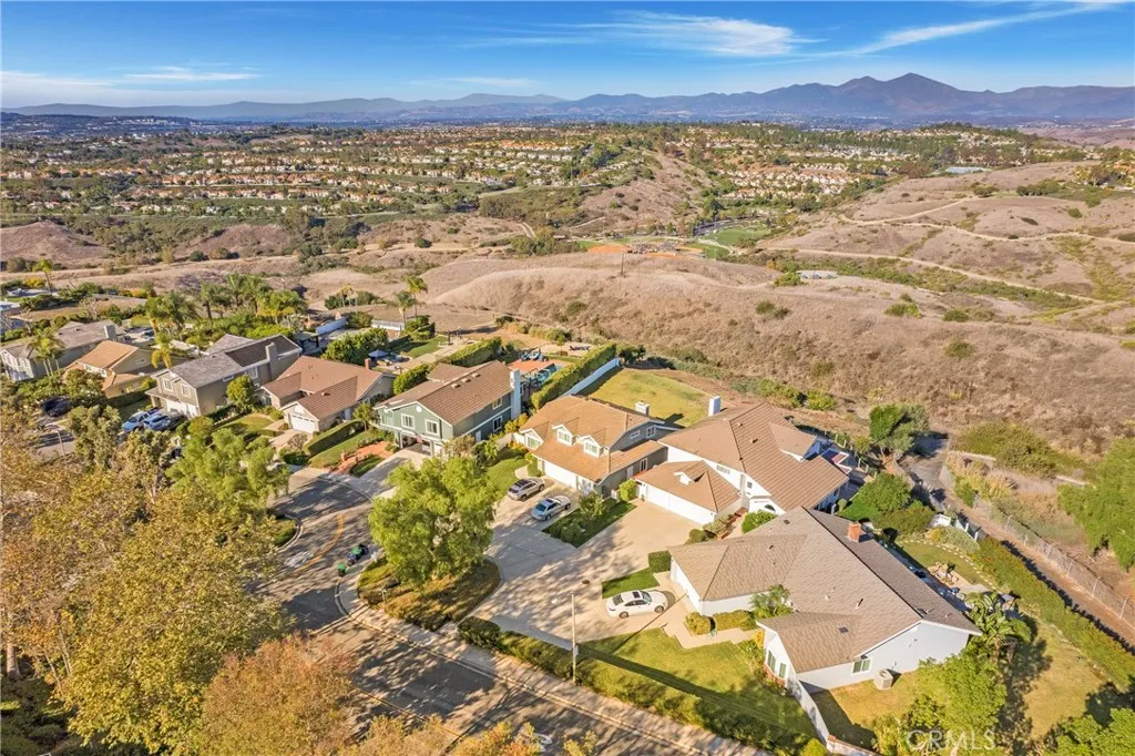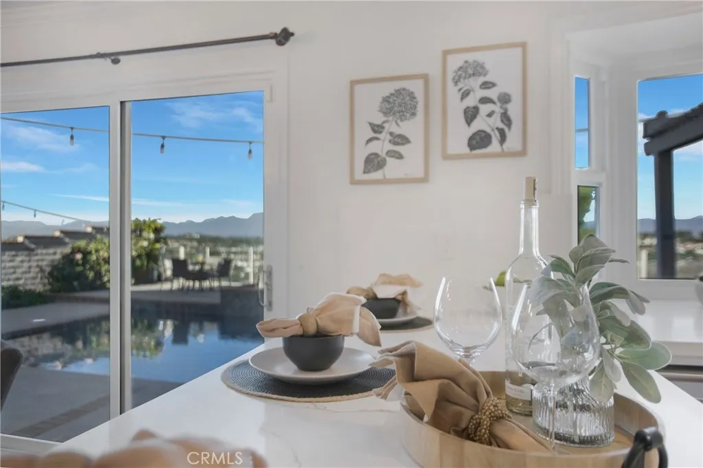 PANORAMIC SADDLEBACK MOUNTAIN VIEWS YEAR ROUND & snow-capped mountain views this gorgeous, just remodeled, picturesque property! This beautifully maintained home on a single loaded street offers 4 bedrooms and 3 bathrooms, including a desirable main floor bedroom, and is situated on an expansive 14,000 sq ft lot that extends onto the serene slope behind providing both space and privacy. The private backyard features a pool with premium Hydrazzo plaster and updated tile, glass fencing along the perimeter to showcase the views, and lush landscaping, a mature lemon tree, and with brand new grass in both the front and back yards.The upgraded interior includes three new chandeliers in the dining room, kitchen nook and entry way, brand new quartz counter tops and backsplash in the kitchen, rich laminate flooring downstairs, new bathroom vanity with quartz countertop with dual sinks in the primary bathroom with new mirrors and recessed lighting, and a brand new bathroom in the jack and jill bathroom upstairs which includes new flooring, a new dual sink vanity with quartz countertops, a new Pottery Barn light fixture, a new window in the shower and a new glass enclosure all with gold accents. The home is equipped with Milgard dual-pane windows throughout, Ecobee smart thermostat, Genie Wi-Fi smart garage door opener, smart front door lock, & Ring doorbell/outside cameras/alarm system and a freshly painted white interior (June 2025) and exterior (September 2023). Additional upgrades include a 240V charger for Tesla and other EVs, large driveway leads to a three-bay garage with loft storage with pull down stairs and a durable new steel roof. Located in the sought-after Beacon Hill community with access to 3 pools/spas and 6 lighted tennis courts, this home offers the perfect blend of luxury, privacy, and lifestyle.