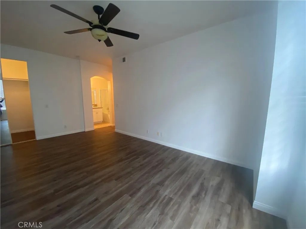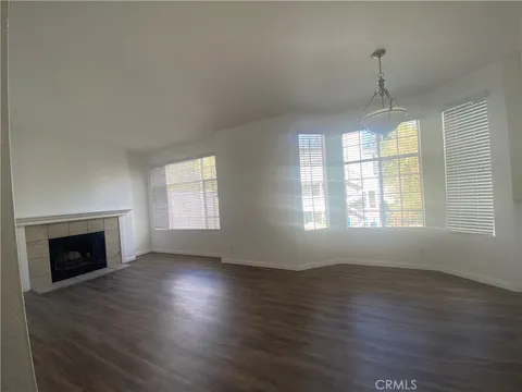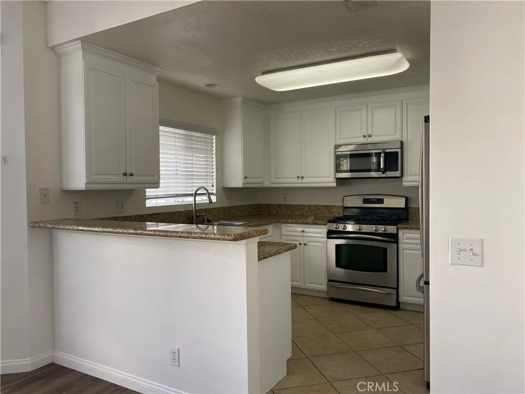 Desirable two bedroom, two bath residence located in the gated Canyon Villas community. This second floor home offers an open floor plan with a kitchen featuring granite countertops and stainless steel appliances. Vinyl wood flooring and fresh paint throughout. Spacious primary bedroom includes a walk in closet and an additional sliding closet, offering ample storage. One attached car garage plus one designated parking space. Community amenities include two resort style pools, spas, fitness club, outdoor fireplace, BBQ areas, and a children's tot lot. Walking distance to the Town Center. Enjoy resort style living in a prime location!