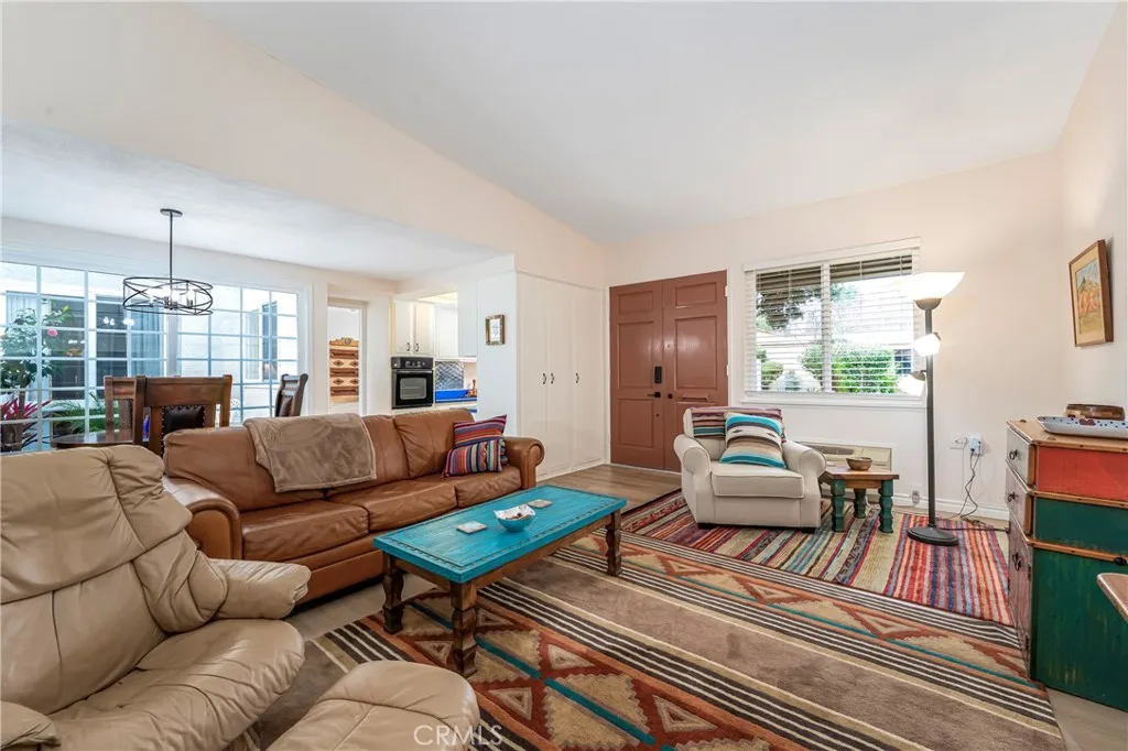 Welcome to this beautifully furnished Granada model in Laguna Woods Village, one of South Orange County's premier 55+ communities. Available for short-term lease from April 6th to September 30th. This charming two-bedroom, two-bathroom home offers comfort, style, and resort-worthy amenities just minutes from Laguna Beach, shopping, and award-winning restaurants. Inside, vaulted ceilings and abundant natural light highlight the home's distinctive Southwestern-inspired d cor. Durable vinyl plank flooring and natural wool rugs run throughout. The spacious living room includes a new 65-inch TV, comfy leather sofa and lounger, and an open layout ideal for entertaining or relaxing. The dining area features a Santa Fe-style wooden pedestal table for four, next to a tiled open-air atrium with a ceramic fountain and a bistro set, perfect for morning coffee. Dual-pane windows and doors enhance comfort and efficiency throughout. The cheerful kitchen is designed for convenience, featuring newer countertops, updated appliances, and a portable dishwasher. Complete sets of cookware and dishes are ideal for everyday living or extended stays. Ready for gourmet cooking or vacation-style use, the kitchen has a microwave, food processor, stand mixer, electric kettle, coffee maker, and more. The guest bedroom features a stylish queen-size Murphy bed, a large closet, and flexible space for visitors or a home office. The updated bathroom features ample counter space and a refinished soaking tub with a glass-enclosed shower. The primary bedroom features a dramatic queen-sized bed, a smart TV, a roomy closet, and a separate heating and air-conditioning unit. Linens and towels are 100% cotton for added comfort. A private en-suite bathroom includes a walk-in shower. Outside, enjoy a private patio finished with Mexican tile, an outdoor table for four, and mature lemon trees that add charm and fragrance to the outdoor space. A removable wheelchair ramp makes the home fully accessible. Residents of Laguna Woods Village enjoy access to golf courses, pools, fitness centers, tennis and pickleball courts, clubhouses, art studios, social clubs, and 24-hour gated security. This vibrant 55+ community is centrally located in South Orange County near medical facilities, coastal recreation, and the beaches of Laguna Beach. Move right in and enjoy the best of active adult living in Laguna Woods.